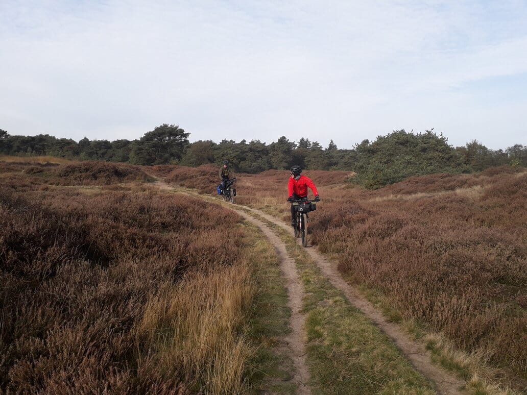 Een weekendje bikepacken in Drenthe met een clubje van de Wereldfietser. Ik heb nog nooit gebikepacked dus voor mij een uitdaging om met zo weinig mogelijk bagage een paar daagjes op de mountainbike door de prachtige bossen van Drenthe te crossen. Aangezien ik normaal niet zo om de kilootjes geef op de fiets merk je dit met bikepacken al snel want fietsen op de soms erg smalle paadjes is een stuk zwaarder dan over asfalt.
