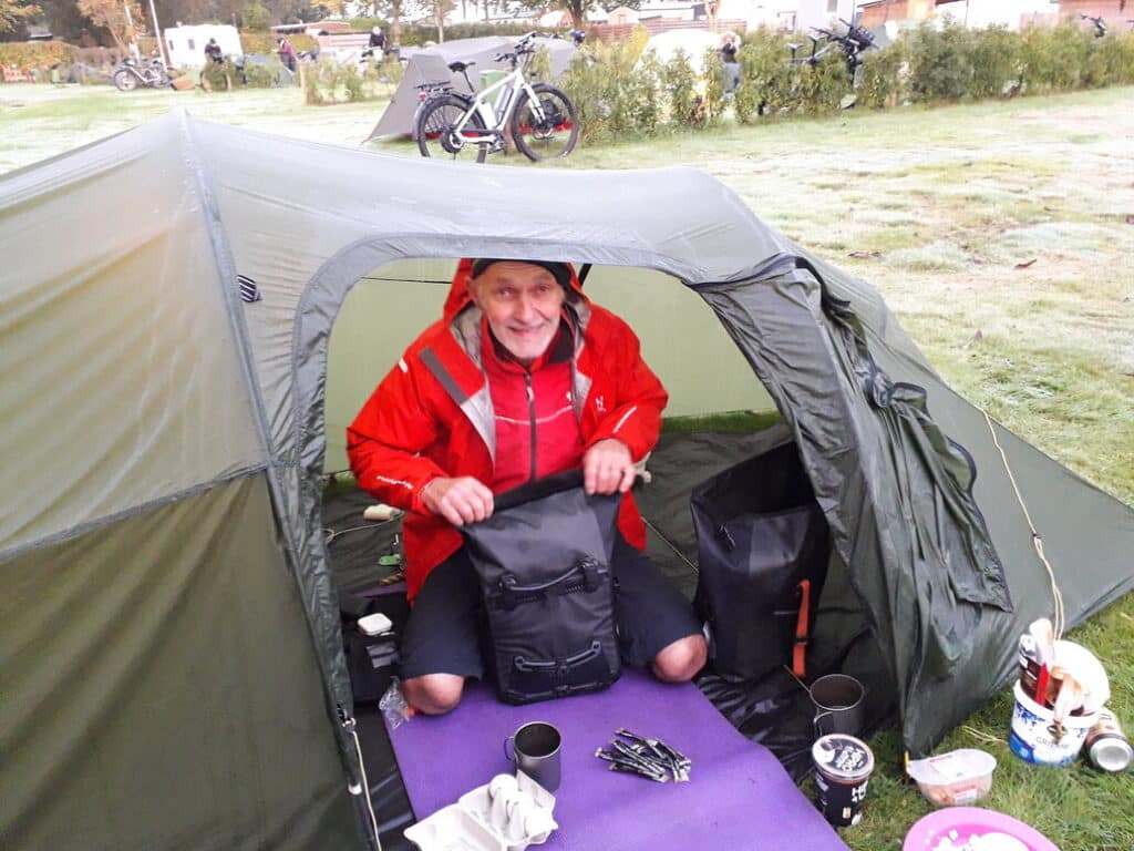 Dit leuke weekend met zo’n 22 mannen en vrouwen start in Beilen op camping Boszicht net buiten het dorp. Er zit een leuk restaurant bij waar we s’avonds gezellig met zijn allen wat drinken. S’middags hebben we al bij aankomst een kleine route gefietst van zo’n 28 kilometer door de bossen in de omgeving. Daarna de tent opzetten, en gezellig eten.