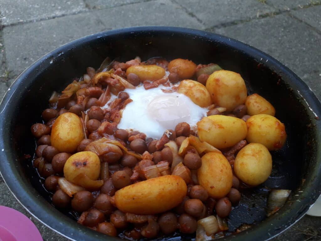 Dit recept is op veel verschillende manieren klaar te maken. Ik ga je een lekker recept van een Captain’s dinner met ei laten zien voor op fietsvakantie en klaar gemaakt in één pan.