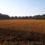 Met tegenwind gaat het niet zo vlot maar bij Koningslust kan ik uitrusten en genieten van mijn eerste Limburgse vlaai op deze tocht. We zijn in Limburg! Het landschap is ook meer glooiender naarmate we meer oostelijk gaan. Ook wordt ik blij verrast in Koningslust door een veld vol met oranje bloemen, prachtig om te zien!